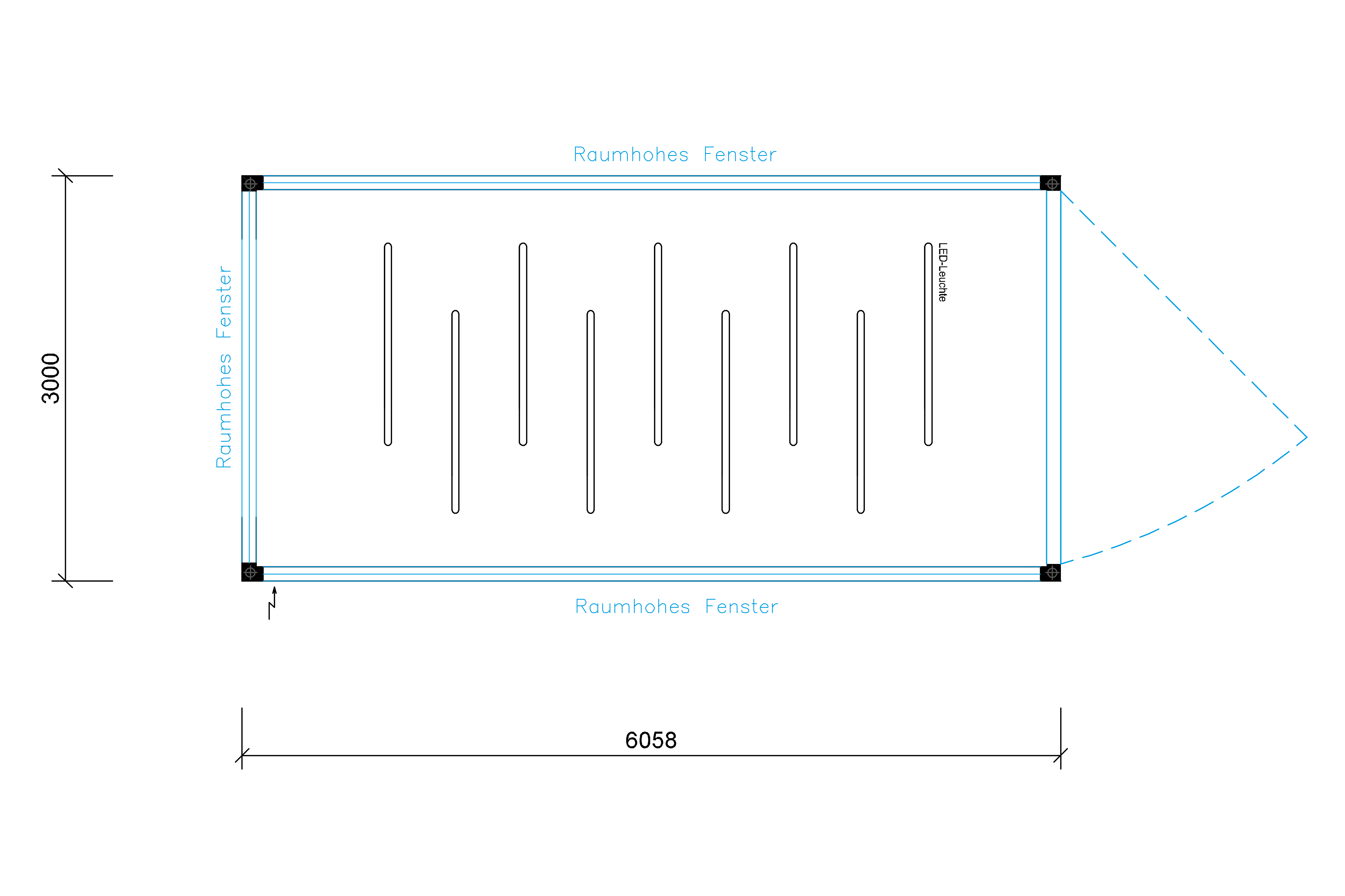 Ausführungen - 1 Stück raumhohes Aluminium Fensterelement auf der 3.000 mm Seite