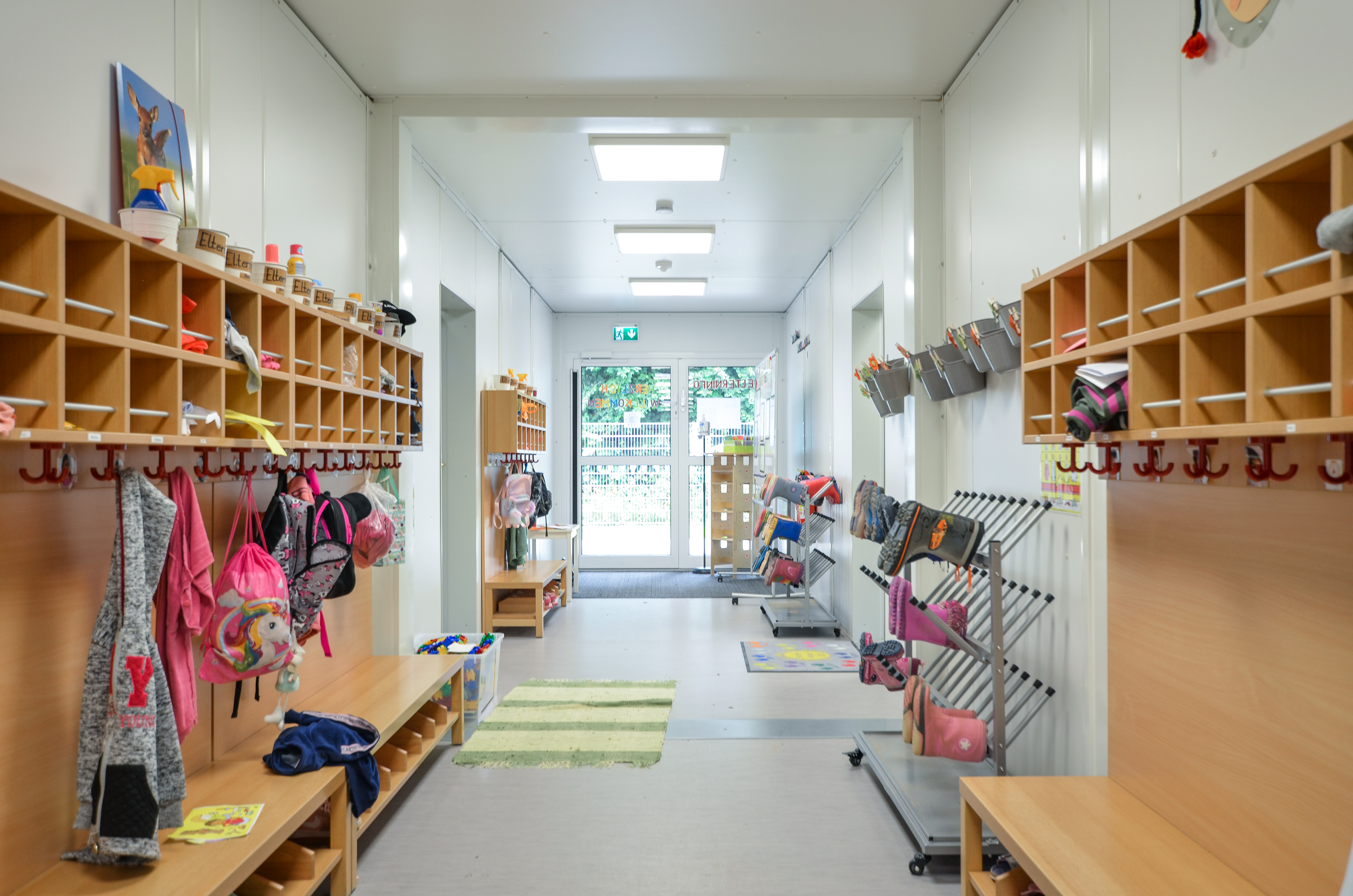 Neben den üblichen Sicherheitsextras wie z. B. Fingerklemmschütze an allen Türen, Steckdosensicherungen und speziellen Elektroheizern, wurden hier noch weitere individuelle Sonderwünsche in die Kindergartencontaineranlage mit integriert.