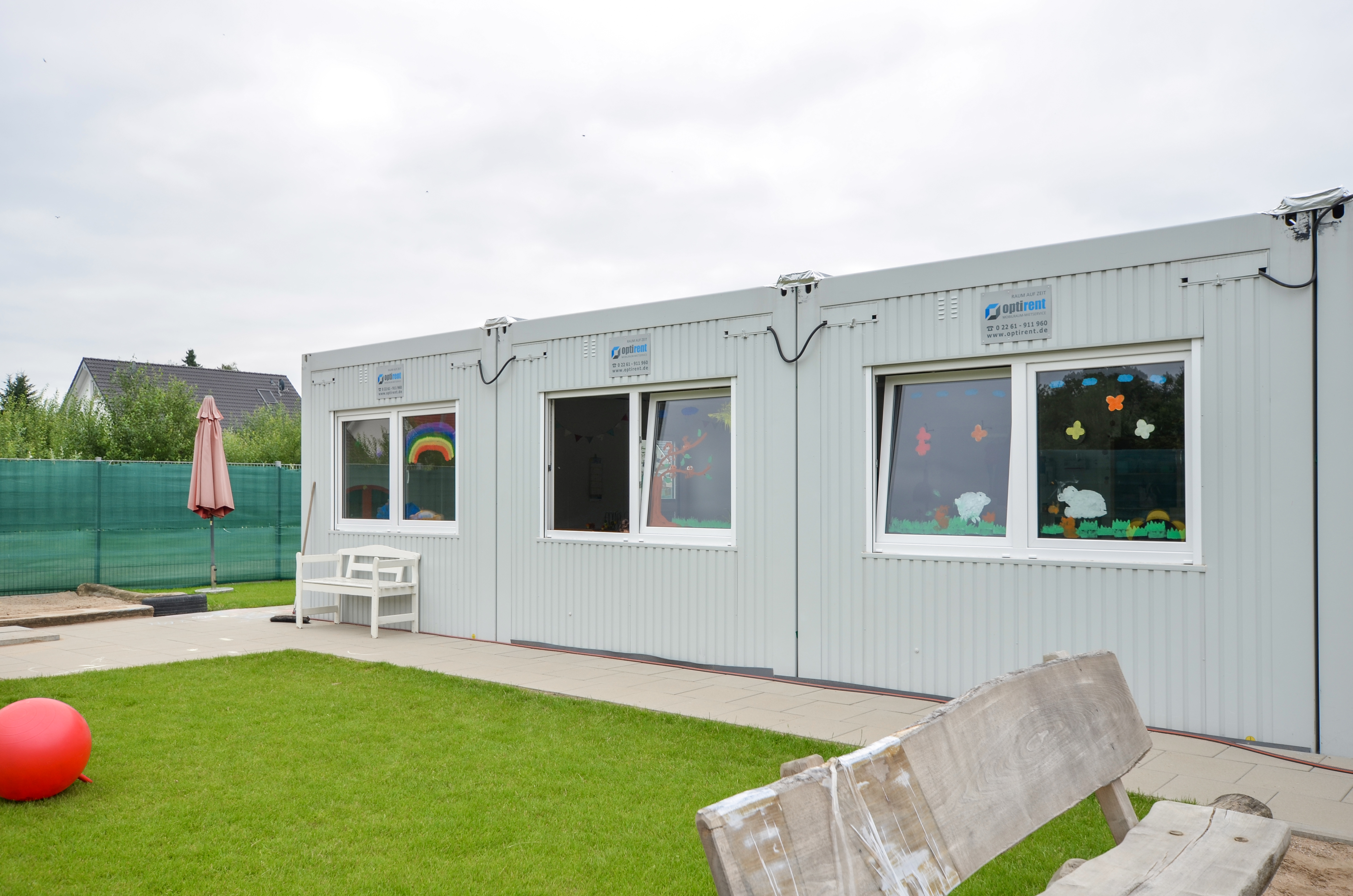 Vor kurzem wurde eine neue Container-Kindertagesstätte in der Nähe von Köln errichtet. Hier können ab sofort bis zu 50 Kindergartenkinder, aufgeteilt in 3 Gruppen, im Alter von 3 – 6 Jahren betreut werden.